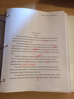 On the title page I've laid out my strategy for this round of edits/fixes. First I will make all the obvious changes (in red on the first page -- thus "red-line" edits). After that I need to fix several scenes with one of my main characters (Cara Wake). Combined, those both should be fairly easy and quick.