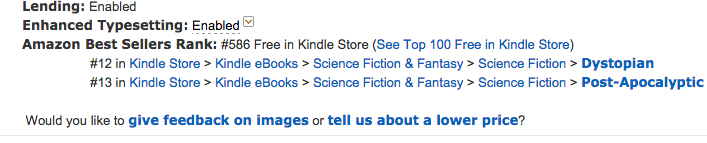 WWIV - Darkness Descends cracked the top 600 in Free Kindle Books during this period. Actually, it crawled a little higher at one point, somewhere near number 500. But of course, I was busy and couldn't take a screenshot at that time.